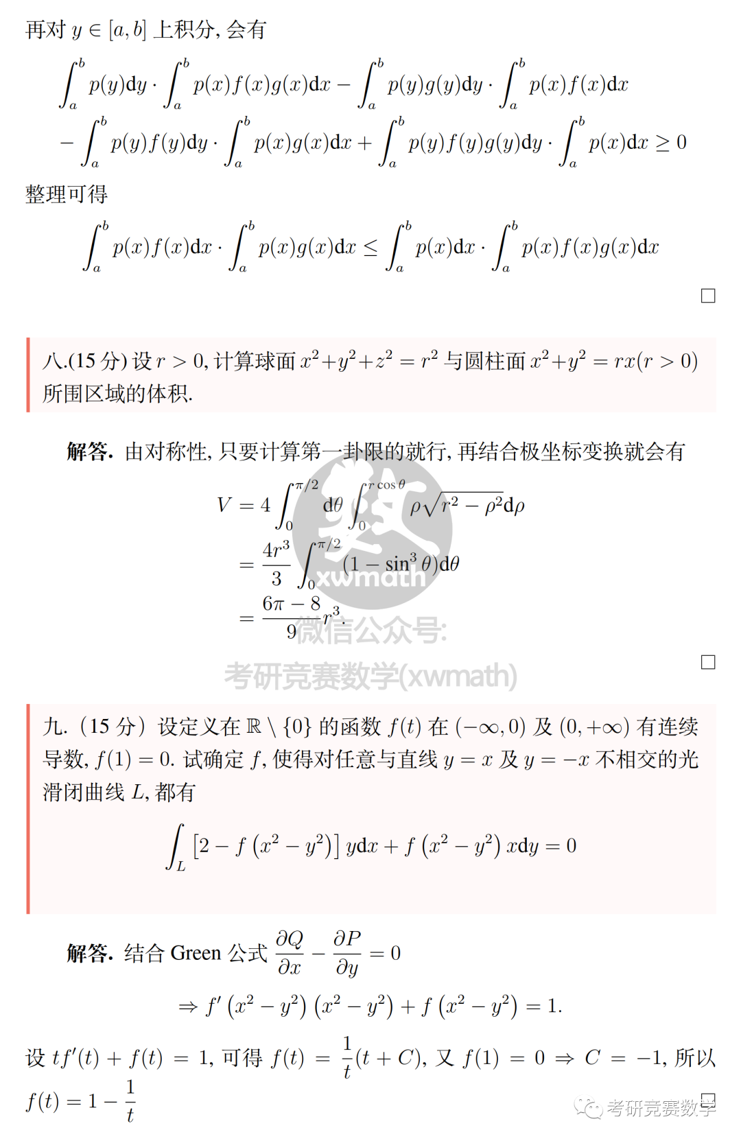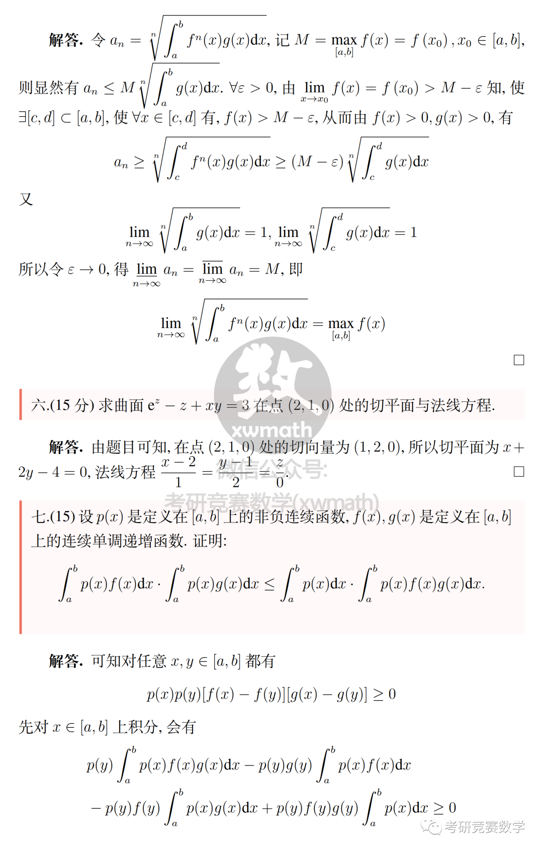 中国人民大学 $p(x)$在$[a,b]$非负且连续,$f(x),g(x)$在$[a,b]$上连续、单调递增。证: